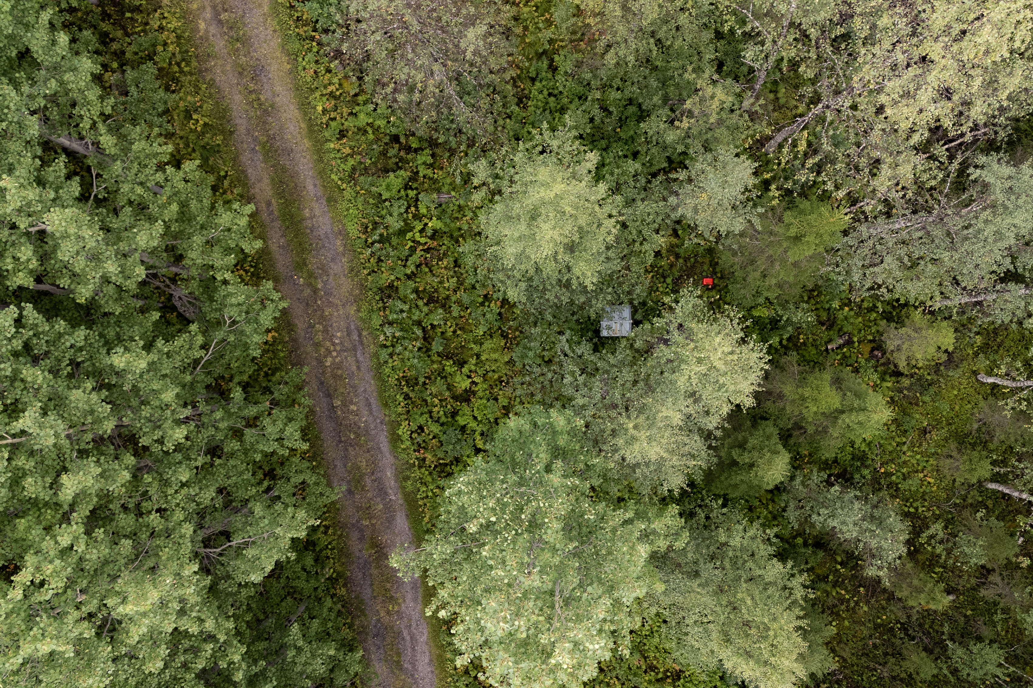Ett pumphus vid en kallkälla i en skog som också är ett fyrtorn. Vad ska det vara bra för?